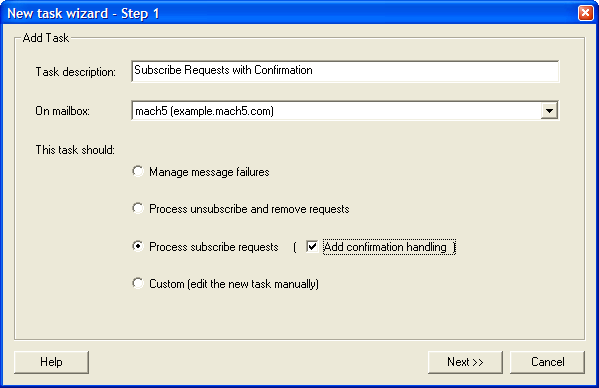 Task Wizard - Subscribe Requests with ConfirmationUse the Task Wizard to create rules and actions for recognizing and managing Subscribe Requests with Confirmation.